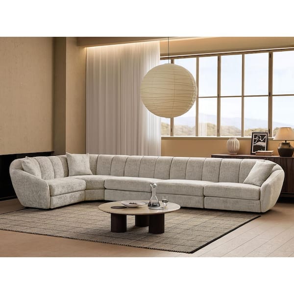 Modern 163 in. Wide Slope Arm Chenille Fabric L-Shaped Sectional Sofa Scallop Sofa 5 Seats in. Light Brown