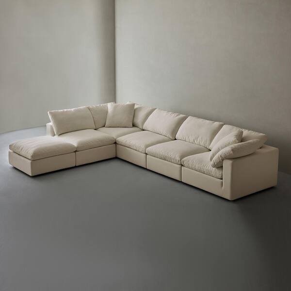 Modern 193 in. Wide Square Arm Linen Fabric L-Shaped Sectional Sofa Combination Sofa 5 Seats with Ottoman in Linen Beige