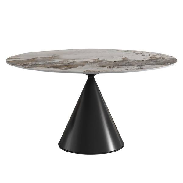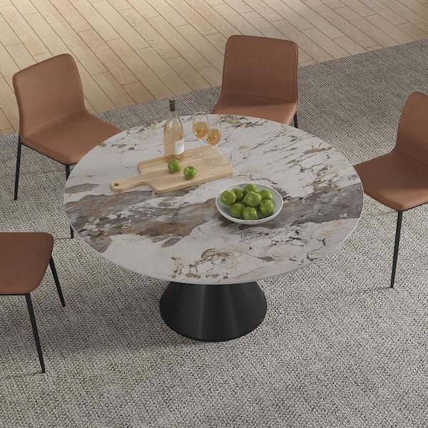 Modern Round Pandora Color Pandora Stone TableTop 53.15in. Black Titanium Stainless Steel Pedestal Dining Table(4 Seats)