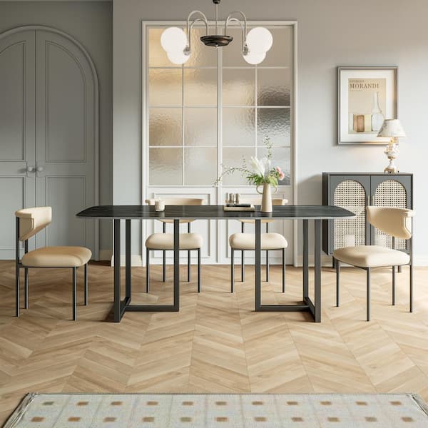 Rectangle Black Lauren Black Gold Stone Top 55.11 in. Black Sand Carbon Steel Double Pedestal Dining Table (4 Seats)