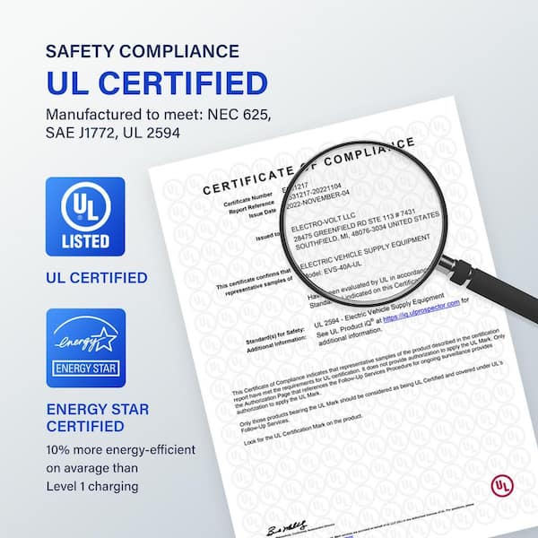 Level 2 EV charger w/Wi-Fi - UL Certified - 40A 240V - NEMA 14-50 Plug J1772 - 18 ft. cable - Electric Vehicle Charger
