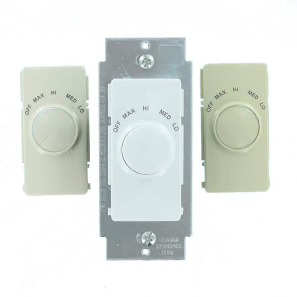 1.5 Amp Decora Single Pole Rotary Step Fan Speed Control, White with Ivory and Light Almond Color Faces Included