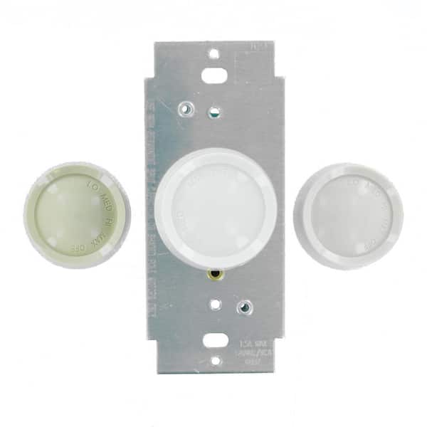 1.5 Amp Trimatron Single Pole Step Control Rotary Fan Speed Control, White with Ivory and Light Almond Knobs Included
