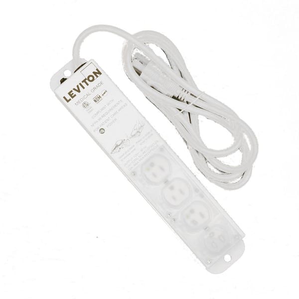 15 Amp Medical Grade 4-Outlet Power Strip with Protection, Locking Covers and 15 ft. Cord, White (1-pack) 5304M-1S5