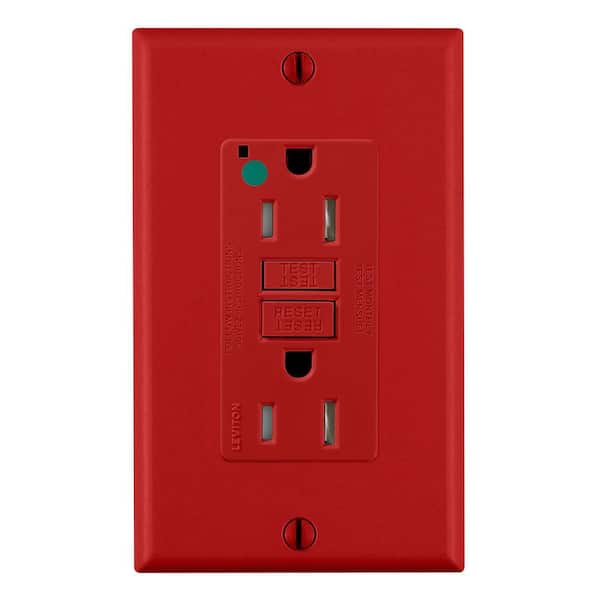15 Amp SmartlockPro Hospital Grade Extra Heavy Duty Tamper Resistant GFCI Outlet with Guide Light, Red GFTR1-HGR