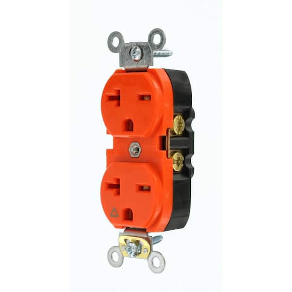 20 Amp 250 V NEMA 6-20R Industrial Grade Isolated Ground Duplex Outlet/Receptacle, Orange (1-Pack) 5462-IG