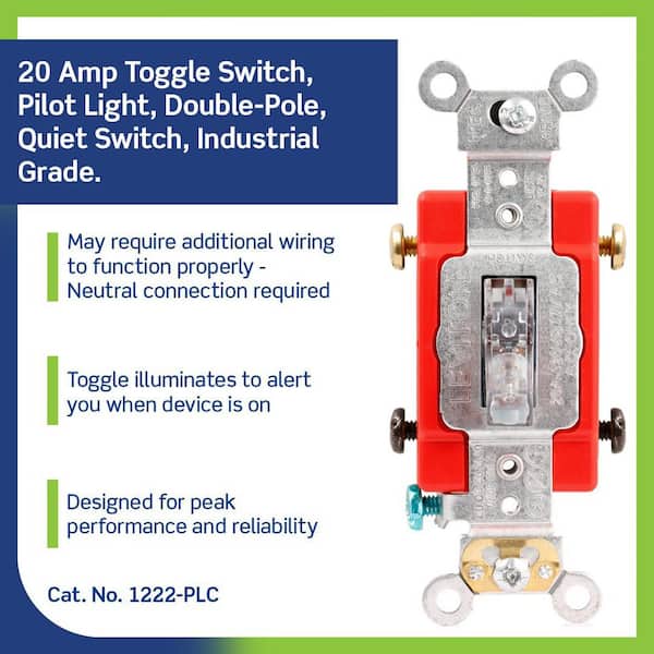 20 Amp Industrial Grade Heavy Duty Double-Pole Pilot Light Toggle Switch, Clear 1222-PLC