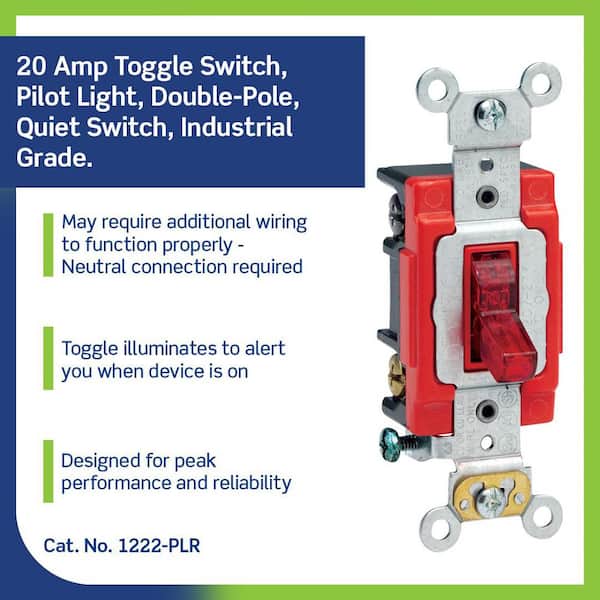 20 Amp Industrial Grade Heavy Duty Double-Pole Pilot Light Toggle Switch, Red 1222-PLR