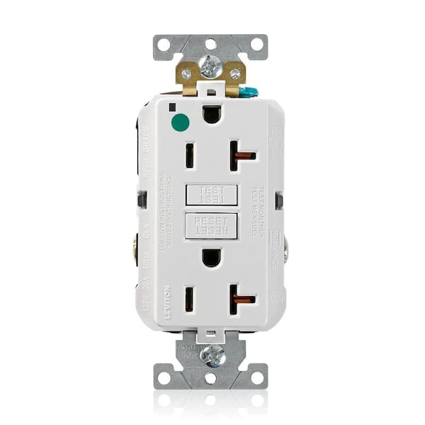 20 Amp Self-Test SmartLockPro Hospital Grade Duplex GFCI Outlet with LED, White GFNT2-HGW