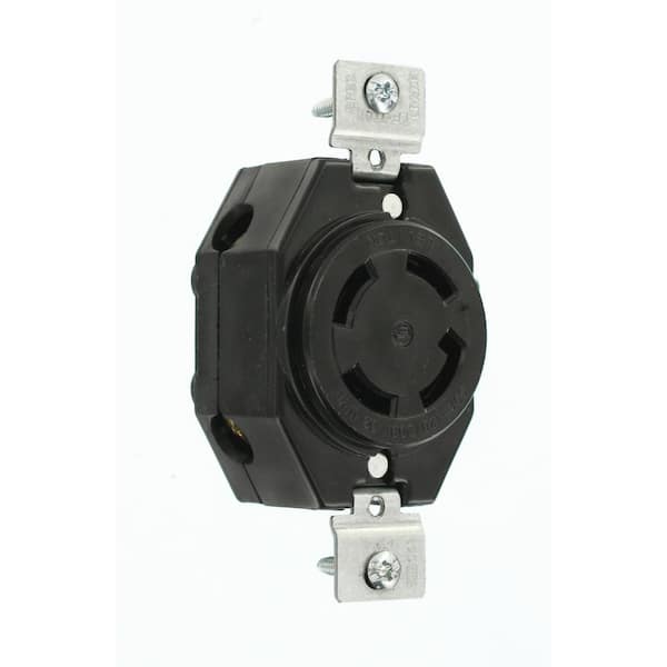 30 Amp 120/208-Volt 3-Phase Flush Mounting Non-Grounding Locking Outlet, Black 3430