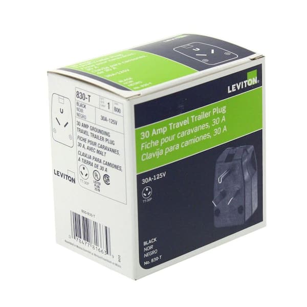 30 Amp 125-Volt 2-Pole Angle Travel Trailer Plug, Black 830-T