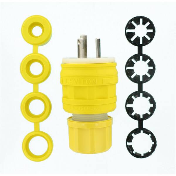 30 Amp 125-Volt Wetguard Locking Grounding Plug, Yellow/White