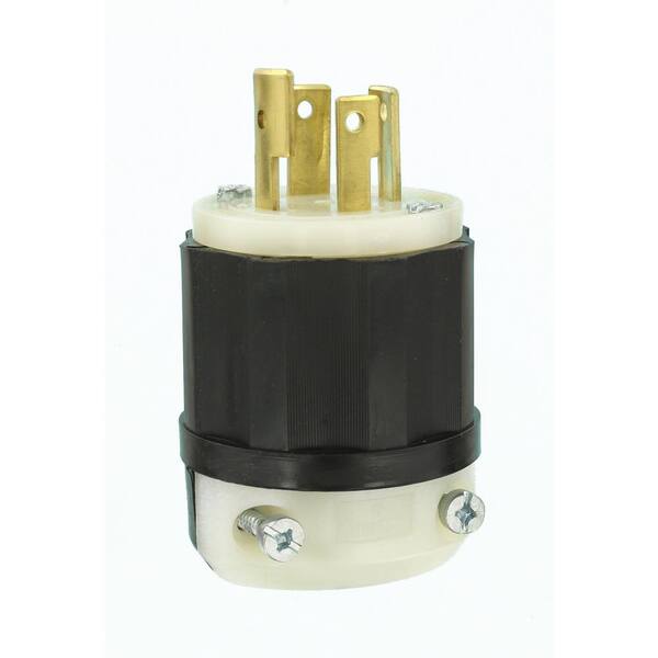 30 Amp 277/480-Volt 3-Phase Locking Non-Grounding Plug, Black/White