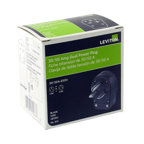 30 Amp/50 Amp 2-Pole/3-Way Grounded Angle Straight Blade Plug, Black