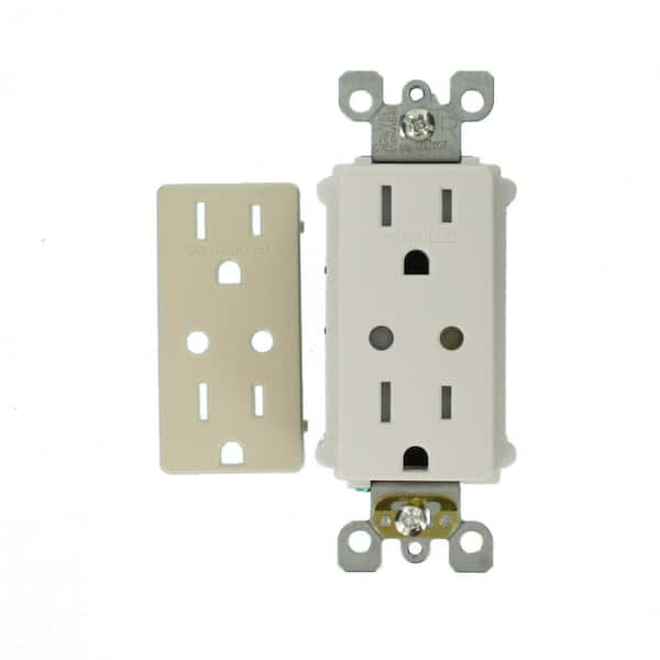 Decora Z-Wave Controls 15 Amp Tamper Resistant Split Duplex Receptacle, White/Light Almond