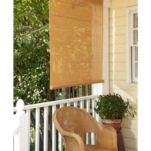 Woodgrain Corded Light Filtering Resists Moisture PVC Exterior Roll-Up Patio Sun Shade 48 in. W x 72 in. L
