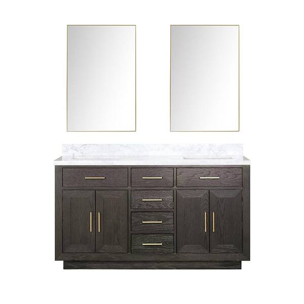 Condor 60 in W x 22 in D Brown Oak Double Bath Vanity, Carrara Marble Top, and 28 in Mirrors