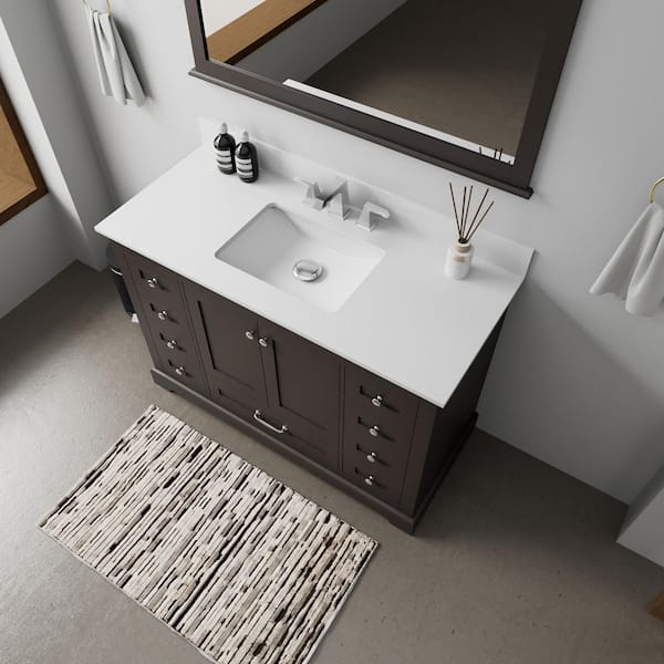 Dukes 48 in. W x 22 in. D Espresso Single Bath Vanity, White Quartz Top, Faucet Set, and 46 in. Mirror