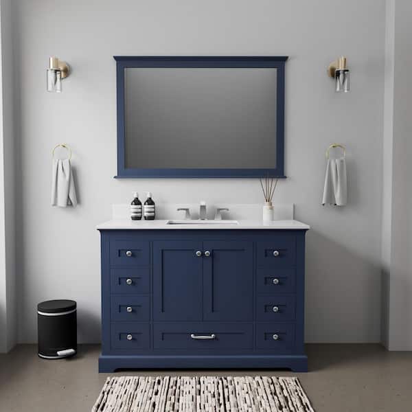 Dukes 48 in. W x 22 in. D Navy Blue Single Bath Vanity, White Quartz Top, Faucet Set, and 46 in. Mirror