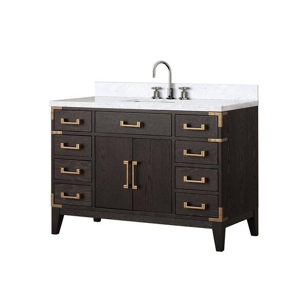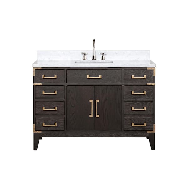 Fossa 48 in W x 22 in D Brown Oak Single Bath Vanity, Carrara Marble Top, and Faucet Set