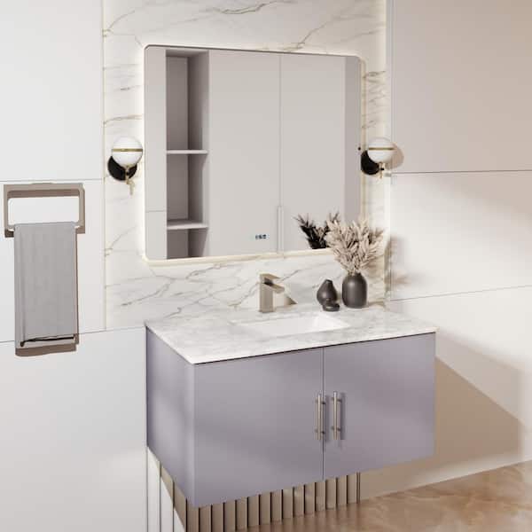 Geneva 36 in. W x 22 in. D Single Bath Vanity Cabinet without Top in Dark Grey with Mirror Assembled