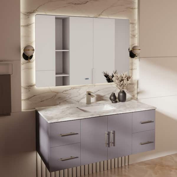 Geneva 48 in. W x 22 in. D Dark Grey Bath Vanity and Carrara Marble Top