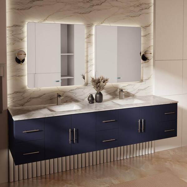 Geneva 84 in. W x 22 in. D Navy Blue Double Bath Vanity and Carrara Marble Top
