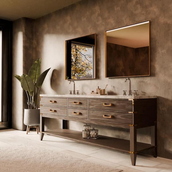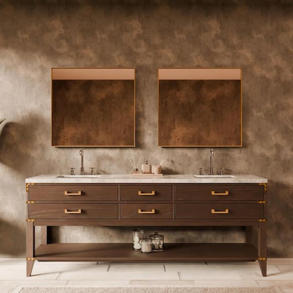 Irvington 84 in W x 22 in D Brown Oak Double Bath Vanity and Carrara Marble Top