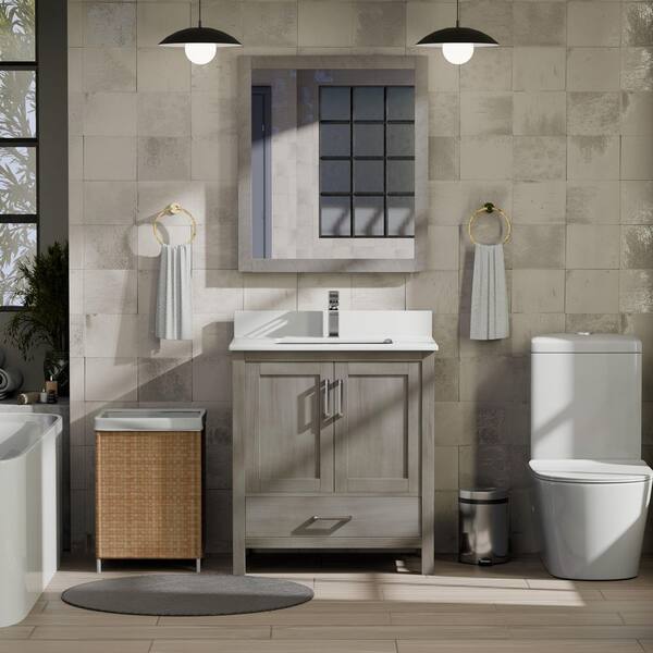 Jacques 30 in. W x 22 in. D Distressed Grey Bath Vanity, Cultured Marble Top, and 28 in. Mirror