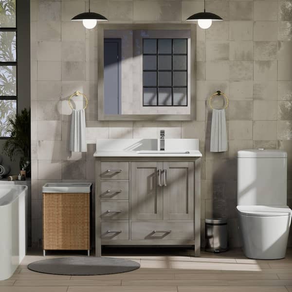 Jacques 36 in. W x 22 in. D Right Offset Distressed Grey Bath Vanity and Cultured Marble Top