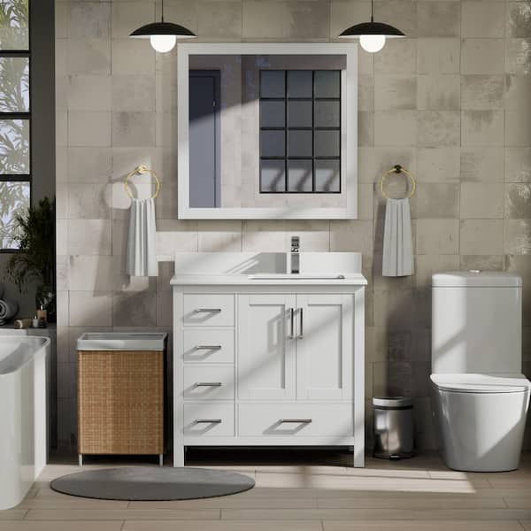 Jacques 36 in. W x 22 in. D Right Offset White Bath Vanity and White Quartz Top