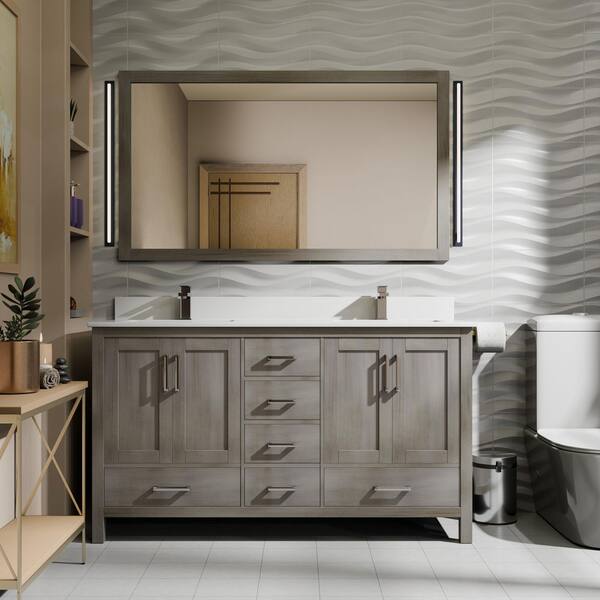 Jacques 60 in. W x 22 in. D Distressed Grey Bath Vanity, Cultured Marble Top, and Faucet Set