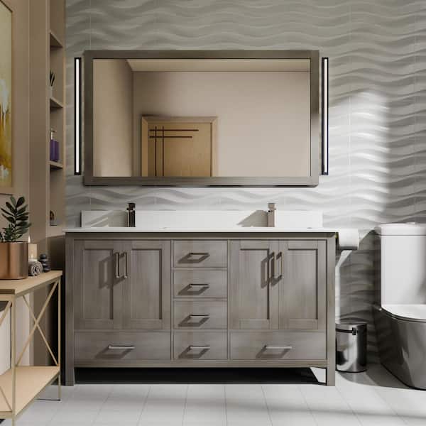 Jacques 60 in. W x 22 in. D Distressed Grey Bath Vanity and Cultured Marble Top