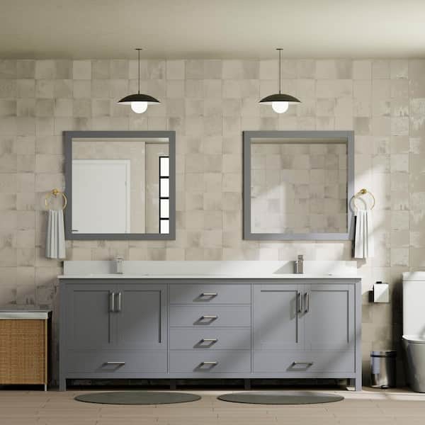 Jacques 80 in. W x 22 in. D Dark Grey Bath Vanity, Cultured Marble Top, Faucet Set, and 30 in. Mirror