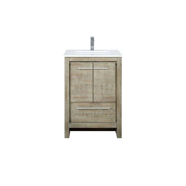 Lafarre 24 in W x 20 in D Rustic Acacia Bath Vanity, White Quartz Top and Chrome Faucet Set