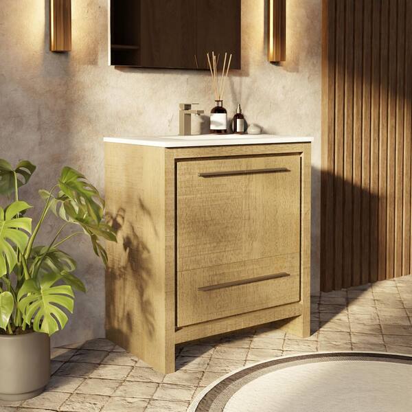 Lafarre 30 in W x 20 in D Rustic Acacia Bath Vanity, White Quartz Top and Gun Metal Faucet Set
