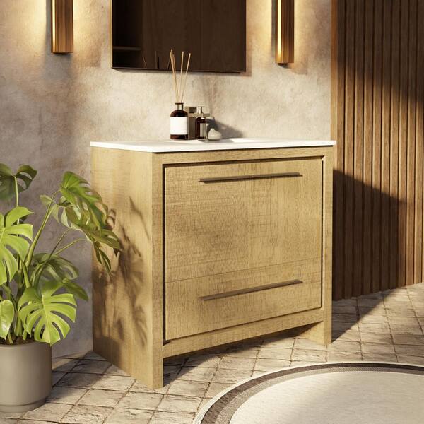 Lafarre 36 in W x 20 in D Rustic Acacia Bath Vanity, Cultured Marble Top and Gun Metal Faucet Set