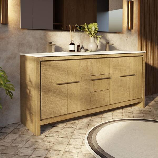 Lafarre 72 in W x 20 in D Rustic Acacia Double Bath Vanity, Cultured Marble Top and Gun Metal Faucet Set