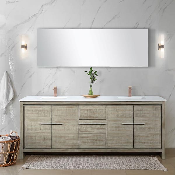 Lafarre 80 in W x 20 in D Rustic Acacia Double Bath Vanity, Cultured Marble Top, Rose Gold Faucet Set and 70 in Mirror