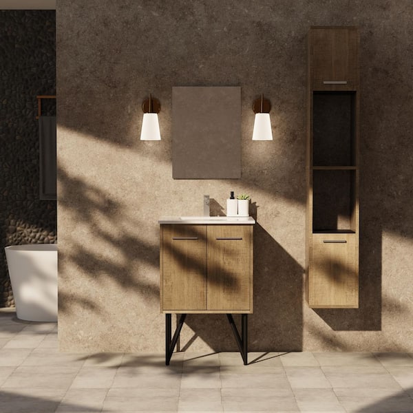• Mid-Century modern bathroom vanity perfect for a small bathroom