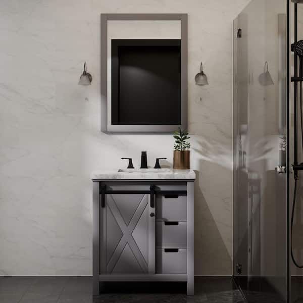 Marsyas 30 in W x 22 in D Dark Grey Bath Vanity, Carrara Marble Countertop, Faucet Set and 28 in Mirror