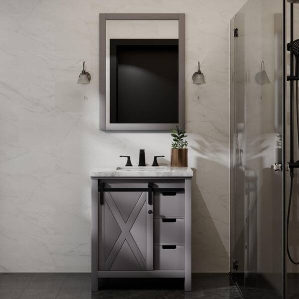 Marsyas 30 in W x 22 in D Dark Grey Bath Vanity and Carrara Marble Countertop