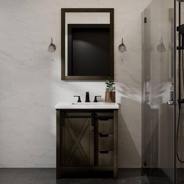 Marsyas 30 in W x 22 in D Rustic Brown Bath Vanity, Cultured Marble Countertop and 28 in Mirror