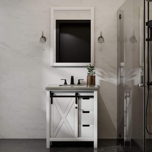 Marsyas 30 in W x 22 in D White Bath Vanity and 28 in Mirror