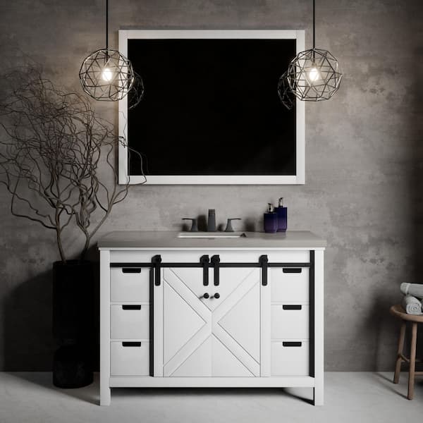 Marsyas 48 in W x 22 in D White Bath Vanity and Grey Quartz Countertop