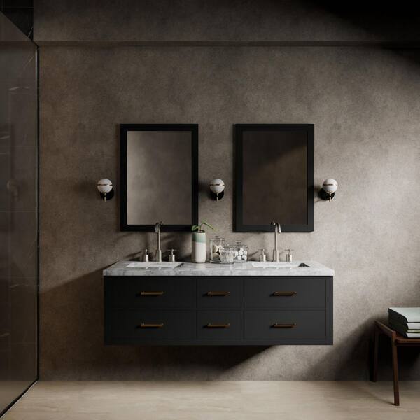 Sherman 60 in W x 22 in D Black Double Bath Vanity and Carrara Marble Top