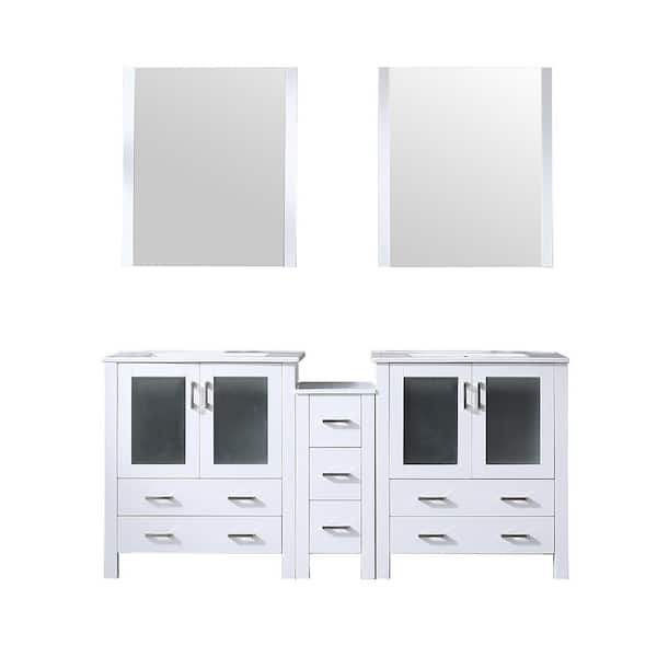 Volez 72 in. W x 18 in. D Single Bath Vanity in White with White Ceramic Top and Mirror