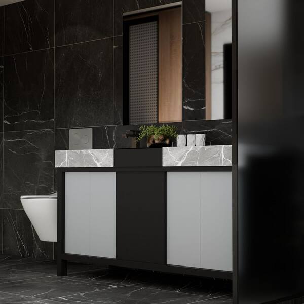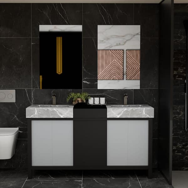 Zilara 60 in W x 22 in D Black and Grey Double Bath Vanity, Castle Grey Marble Top and 28 in Mirrors