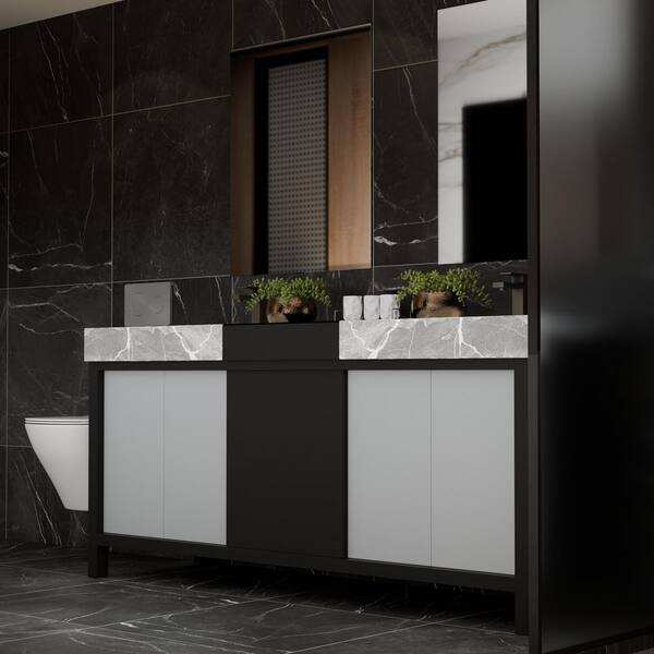 Zilara 72 in W x 22 in D Black and Grey Double Bath Vanity and Castle Grey Marble Top
