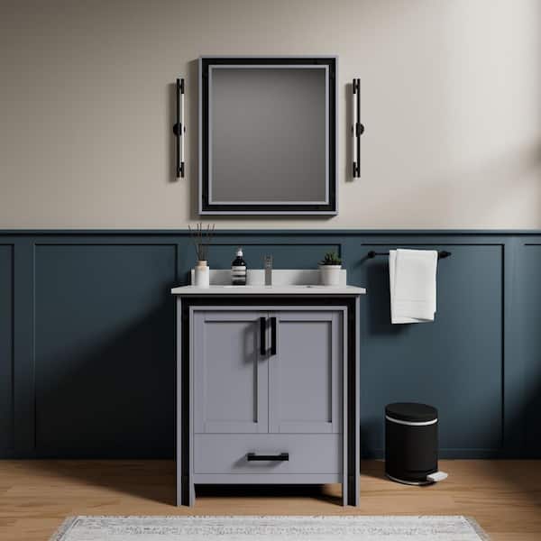 Ziva 30 in W x 22 in D Dark Grey Bath Vanity, White Quartz Top and 28 in Mirror